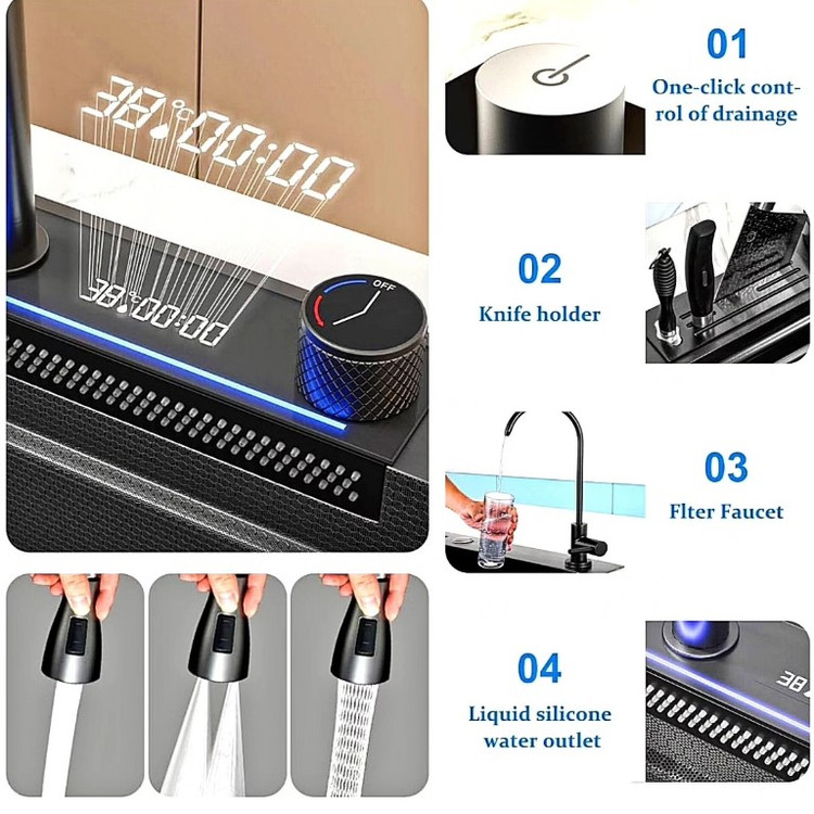 سینک ظرفشویی پیانویی 5 کلید HuaDiao مدل 100 سانتیمتر، انتخابی لوکس و مدرن برای آشپزخانههای امروزی است. ساخته شده از استیل ضدزنگ SUS304 با طراحی منحصر بهفرد پیانویی و کلیدهای هوشمند، این سینک تجربهای متفاوت از شستوشو و مدیریت آشپزخانه را به شما هدیه میدهد.