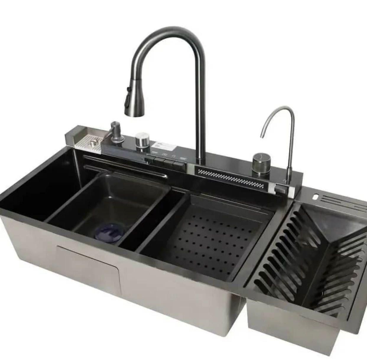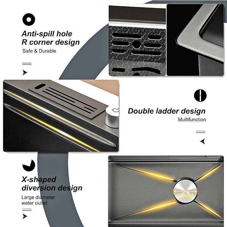 سینک ظرفشویی پیانویی 5 کلید HuaDiao مدل 100 سانتیمتر، انتخابی لوکس و مدرن برای آشپزخانههای امروزی است. ساخته شده از استیل ضدزنگ SUS304 با طراحی منحصر بهفرد پیانویی و کلیدهای هوشمند، این سینک تجربهای متفاوت از شستوشو و مدیریت آشپزخانه را به شما هدیه میدهد.