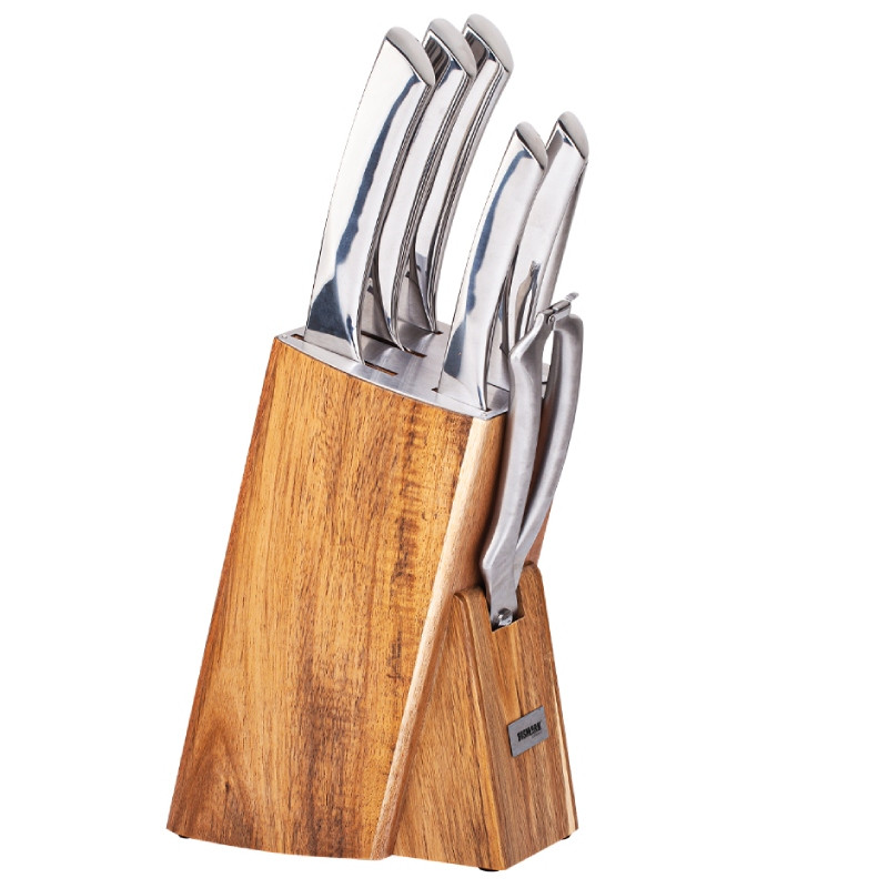 سرویس چاقوی 7 تکه بیسمارک BM130 – استیل ضد زنگ با پایه چوبی | KitchenPro