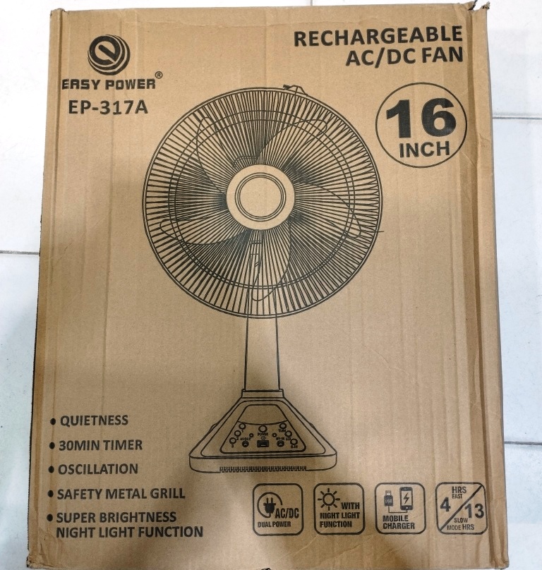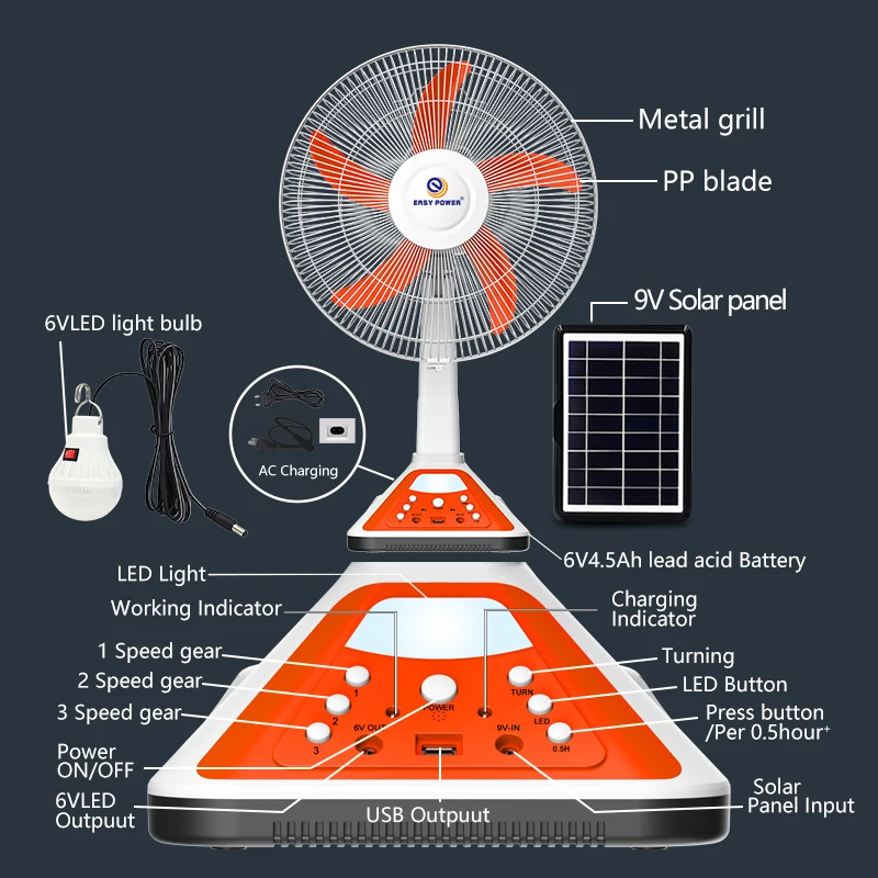 Easy Power EP-317A 16" Solar Fan | LED Light + Multi-Purpose Charging