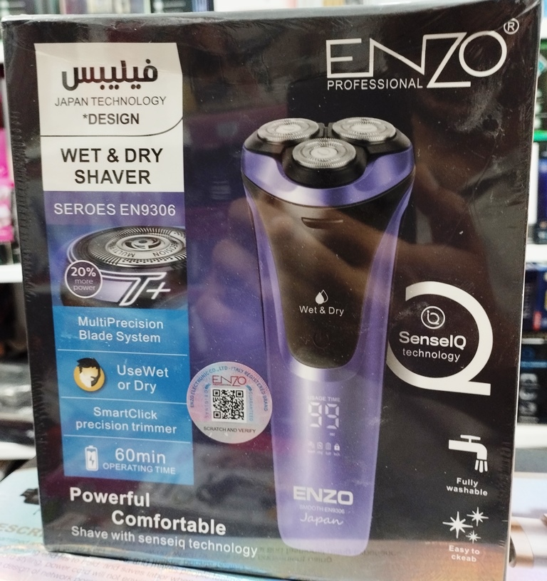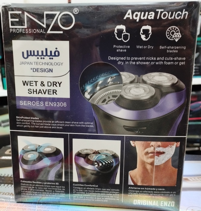 ریشتراش مرطوب و خشک Enzo EN-9306 | سهتیغه شارژی + باتری قدرتمند SharpBlade