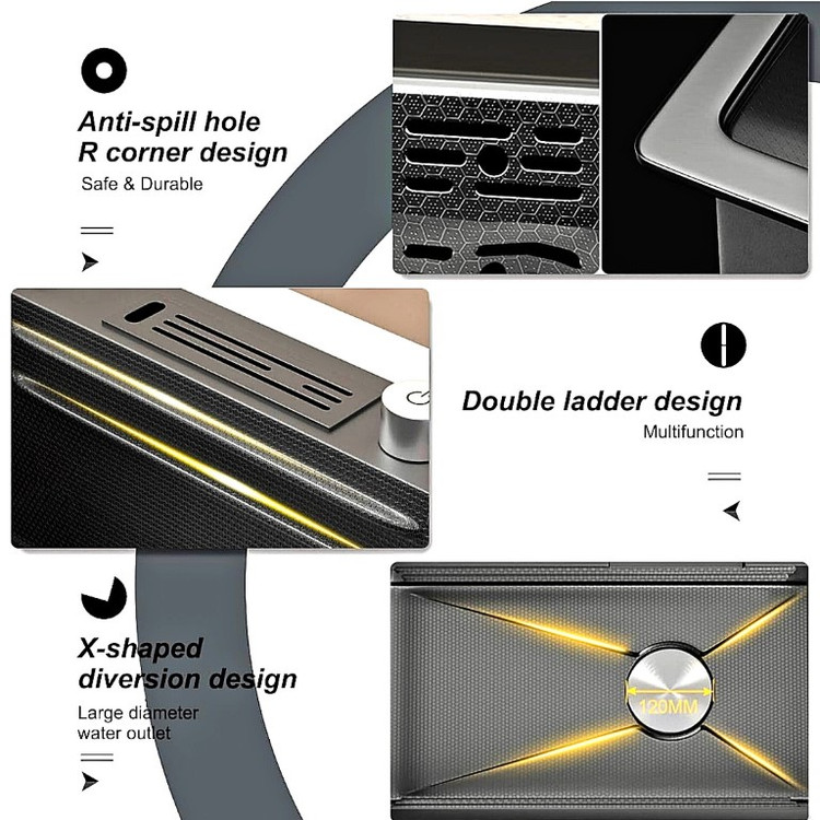 سینک ظرفشویی آبشاری ۷۵ سانت HuaDiao ترکیبی از کیفیت درجه A++، استیل SUS-304 و طراحی مدرن آبشاری است که تجربه شستشوی ظروف و میوهها را به سطح حرفهای میرساند.