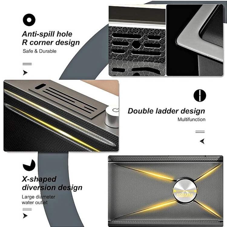 سینک ظرفشویی هوشمند پیانویی ۷ کلید ۷۵ سانت HuaDiao | نمایشگر دیجیتال، ضدزنگ SmartSink
